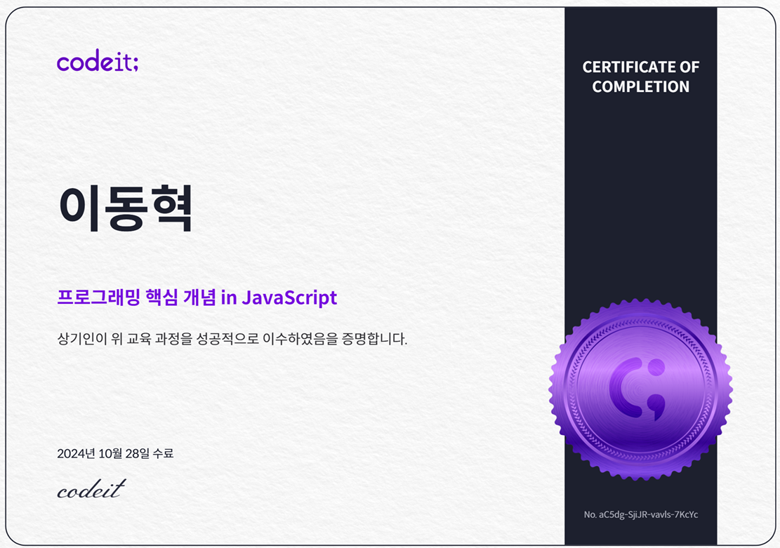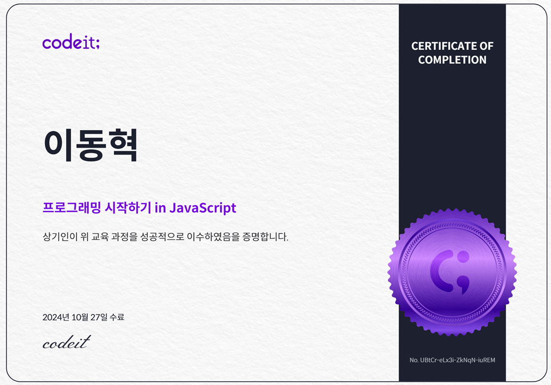 코드잇 스프린트에 합격하고, 11월 28일부터 교육이 시작될 예정입니다.