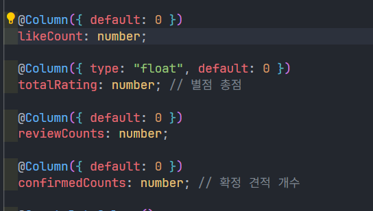 단점: 쓰기(좋아요 추가/삭제, 리뷰 생성 등)마다 해당 컬럼을 업데이트해야 해서 트랜잭션 복잡도가 늘어나고, 동시성 이슈로 값이 일시적으로 어긋날 수 있음.