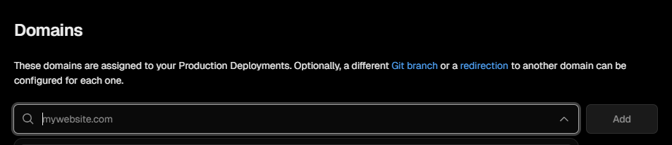 자신의 도메인 (본인 소유의 도메인이어야 합니다.) 을 입력하고 Add 버튼을 누르면 됩니다.