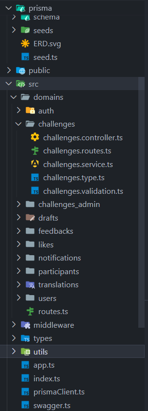 기본적으로 도메인형 디렉토리 구조를 따르려고 했습니다. routes에서는 경로 설정 및 인증 미들웨어, 검증 미들웨어를 넣어주었고 controller에서는 service와 상호작용하며 req를 검증하거나, service에서 DB에 접근하여 받은 result를 다시 return받아 response 처리를 해주도록 구현했습니다.