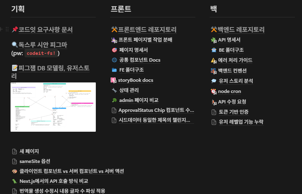 - 저희는 피드백을 PR에, 공유사항을 노션에 최대한 정리하였습니다. 그리고 서로의 문제상황을 어느정도 고민하다가 막히면 바로 팀원끼리 소통하여 문제를 해결하려고 했습니다. 그런 과정을 겪으면서 문제를 빠르게 해결하기도 하였고, 서로간의 의견 차이가 발생했을 때 어떤 식으로 자신의 의견을 얘기하는지, 어떤 식으로 상대방의 의견에 대해 수렴하는 지 고민해볼 수 있는 시간을 가졌습니다.