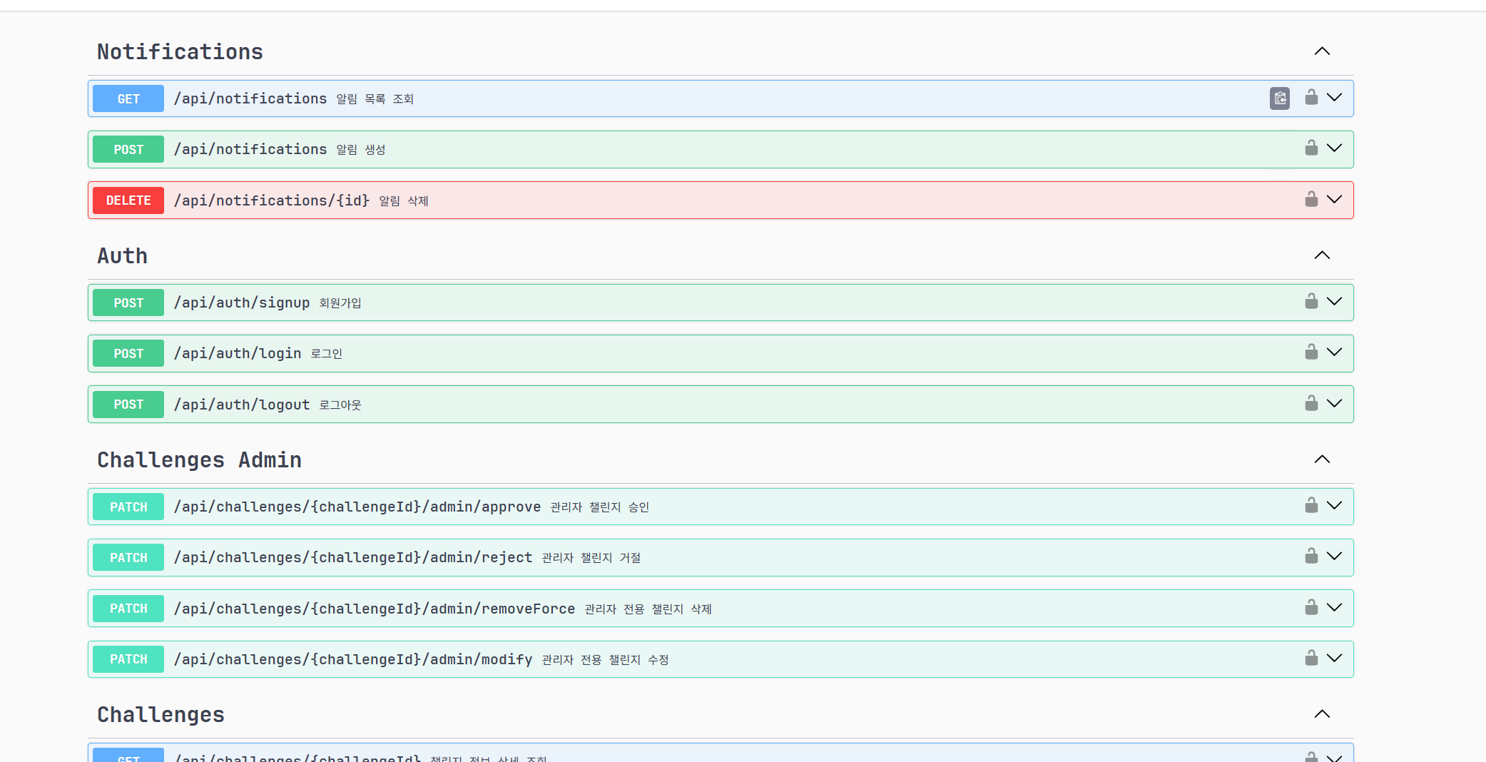 백엔드 : 챌린지 관련 조회, 수정, 삭제 (관리자 일부 포함) 등 API 약 9개