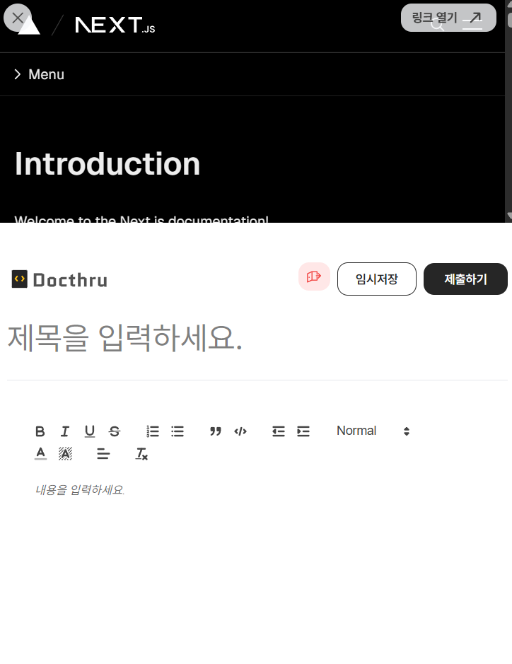 제가 프론트 쪽에서 담당했던 부분인데 임시 저장을 하고, 다시 페이지에 방문하면 "임시 저장을 불러오겠습니까?" 라는 모달이 뜨게 됩니다. 그리고 불러오기를 하면 이전에 임시저장했던 작업이 불러와집니다.
