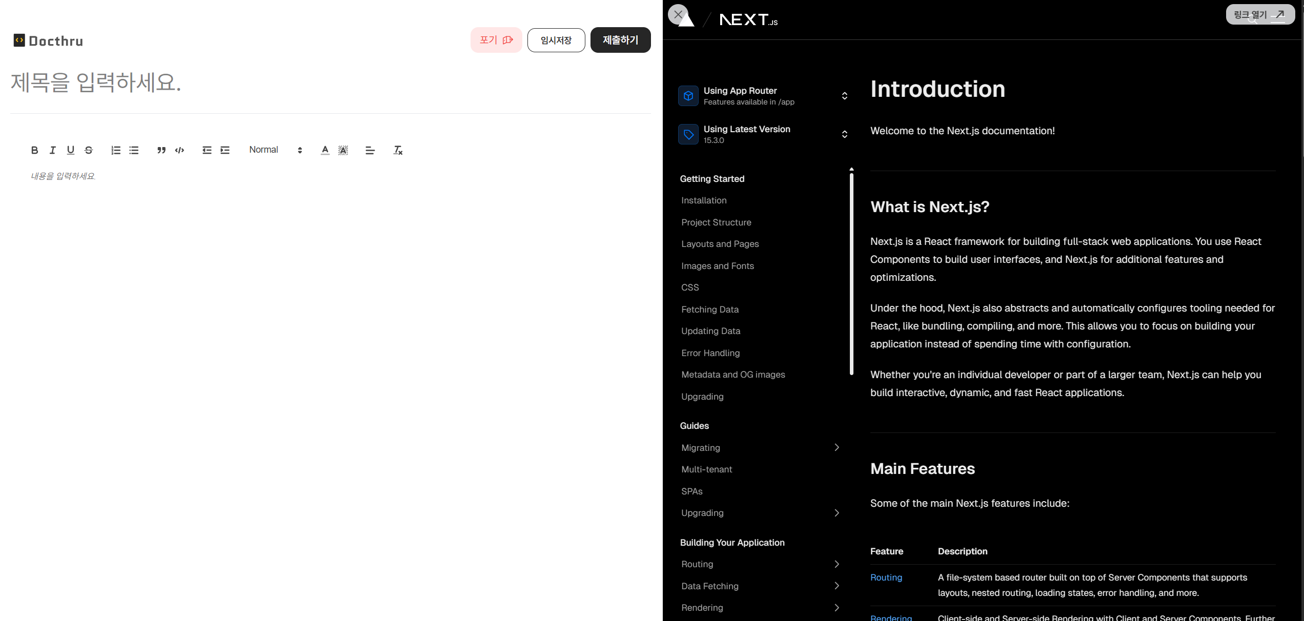 대다수의 개발 시장 콘텐츠가 영어로 작성되어 있어, 영어를 잘 하지 못하는 한국인들이 해당 기술을 습득하는데 어려움을 겪고 있습니다. 그래서 개발 관련 영어 문서를 여러 사람들과 함께 한글화 작업을 하는 챌린지를 진행하고, 번역 에디터에서 번역을 진행하고, 번역물에 대한 피드백을 주고받을 수 있는 서비스입니다.